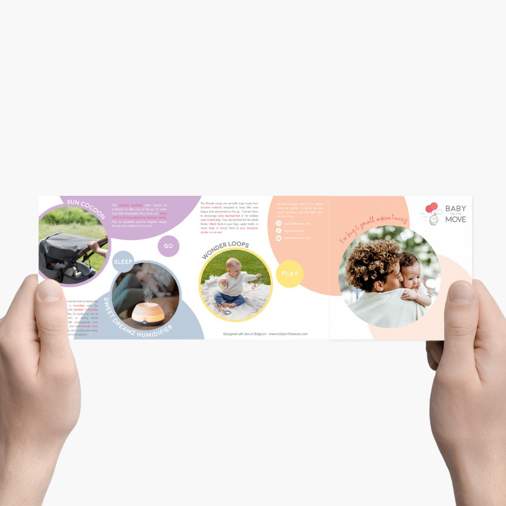 Our brand brochure is ideal for introducing our brand to your beloved customers. You can easily add it to packages, give it along at birth list appointments, or put it in your store.