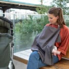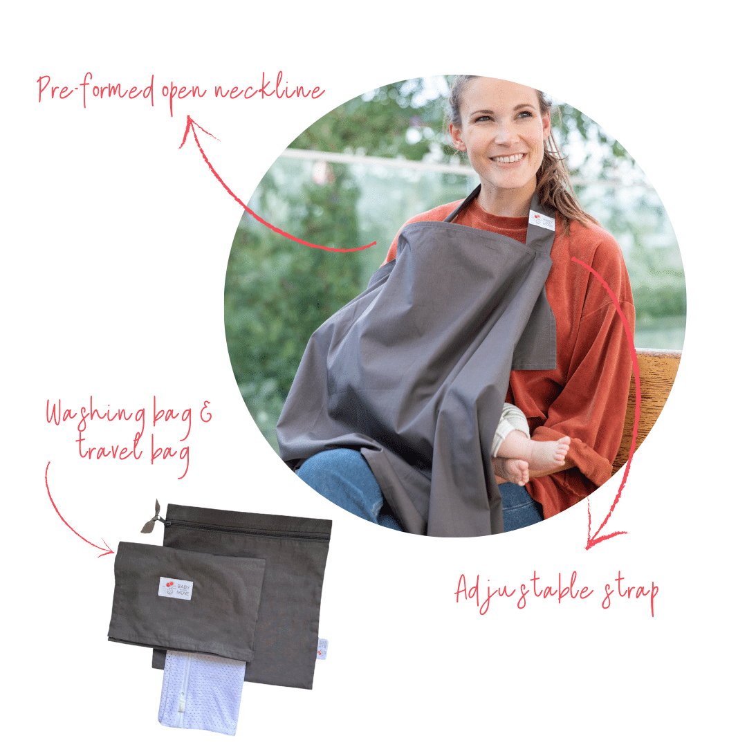 Our breastfeeding cover comes with a convenient washing bag and a matching on-the-go bag so that you can easily take your Baby on the Move Nursing Cocoon with you.