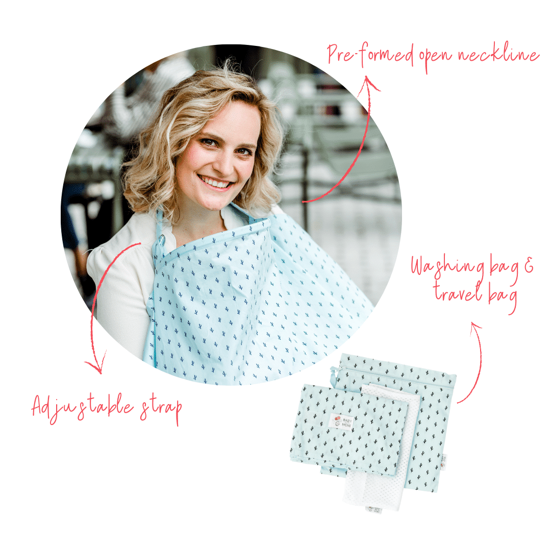 Our breastfeeding cover comes with a convenient washing bag and a matching on-the-go bag so that you can easily take your Baby on the Move Nursing Cocoon with you.