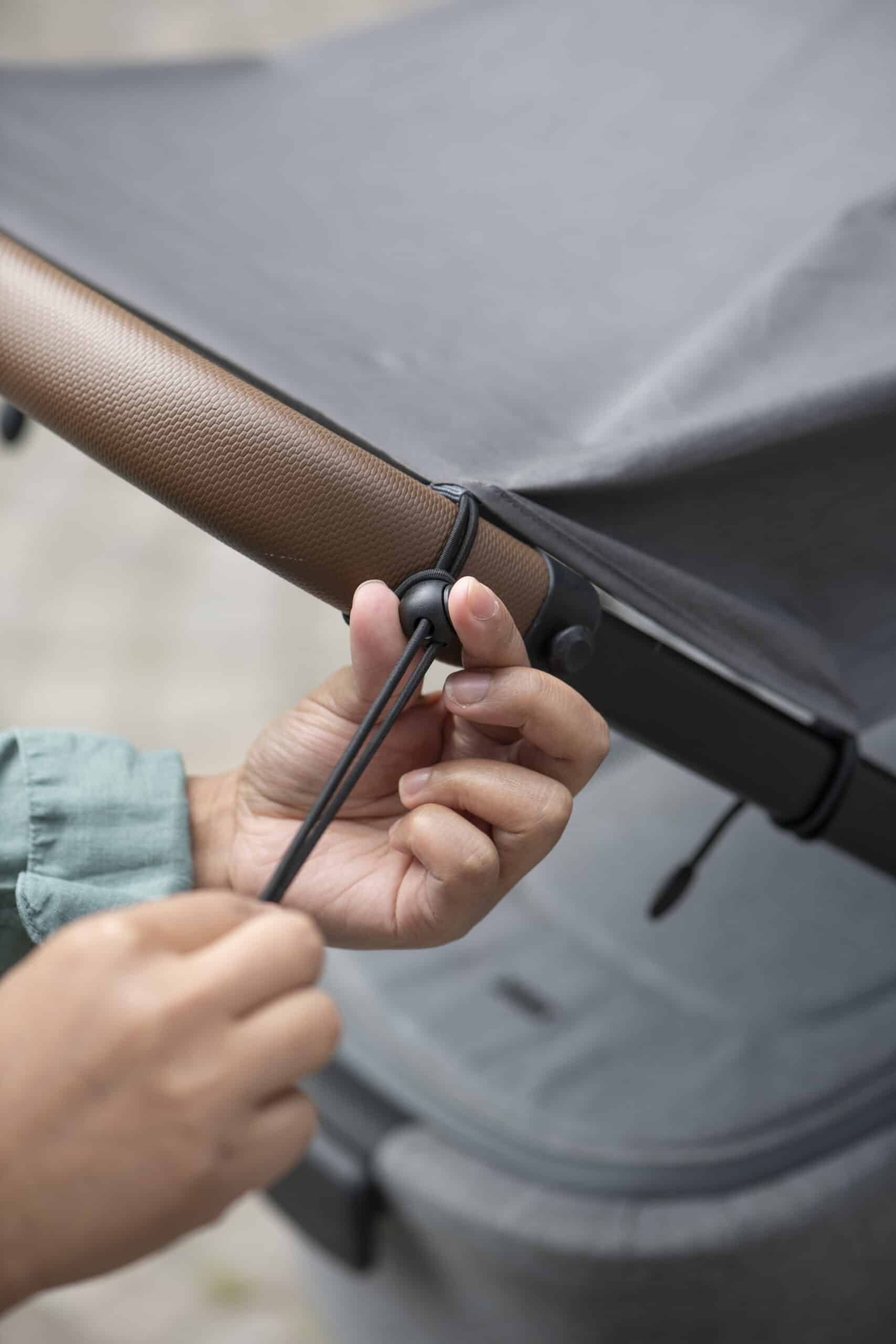 - Quick fix system: easy to install with magnets in the flaps and elastics to adapt to any length of the stroller’s handle.