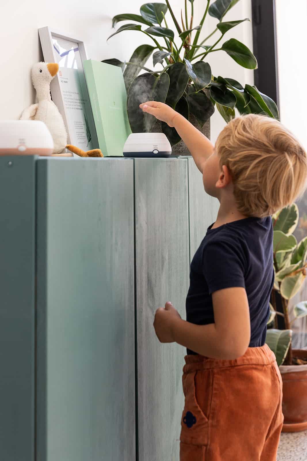 What makes this humidifier so special is its clever design. It is collapsible making it an indispensable compact companion for families on the go. In addition, this humidifier can be charged via USB and works silently for up to 7 hours, so your little one can enjoy a peaceful night’s sleep. The automatic shut-off guarantees a safe and undisturbed rest for everyone.