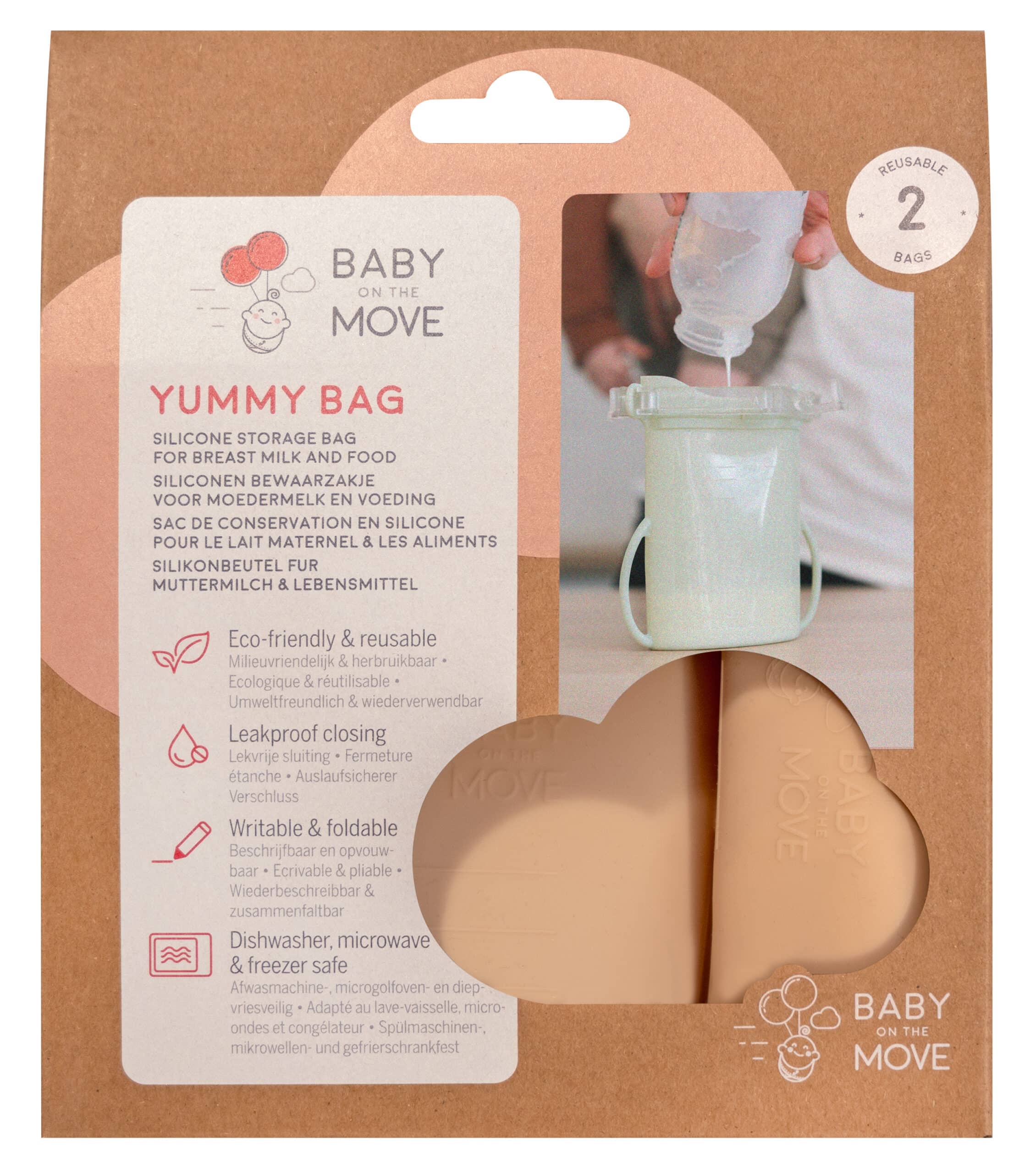 Our Yummy bag is designed as a food storage solution from birth to toddlerhood (and beyond)! Its size is ideal for care-free storage of your precious breast milk anywhere. As your baby grows, you can use it to take porridges or tasty nibbles wherever you go. When your toddler is ready for school, do not forget to pack their Yummy Bag! Their snacks will stay fresh and you will not have to worry about any leaks. Beyond that you can of course keep using the Yummy Bag for single servings of soup, snacks, and other meals. We are convinced that your Yummy Bag will eventually become an indispensable part of your kitchen storage system.