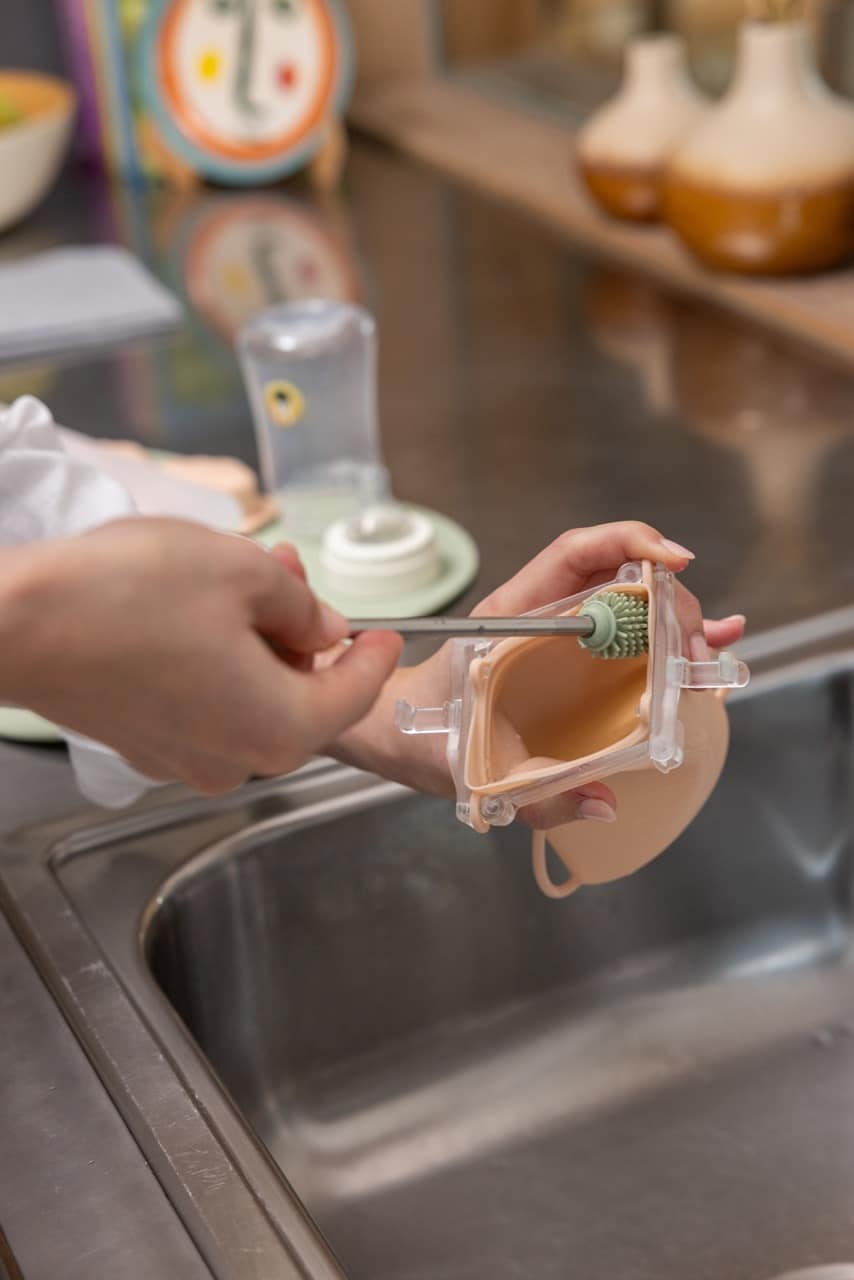 Our Baby on the Move Yummy Brush is designed for precision cleaning of large components as well as those tricky small parts. This versatile brush is perfect for bottles, pump parts, teats and all your Yummy products. Make cleaning quick and effortless, both at home and while on the go. Once you’re done, you can simply hang it to dry.